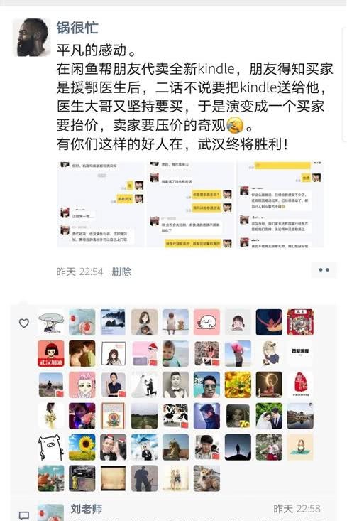 “在闲鱼帮朋友代卖全新Kindle,朋友得知买家是援鄂医生后,二话不说要把Kindle送给他,医生大哥又坚持要买……”昨晚,汉口市民吕先生发朋友圈讲述此事。他表示:“有你们这样的好人在,武汉终将胜利!”