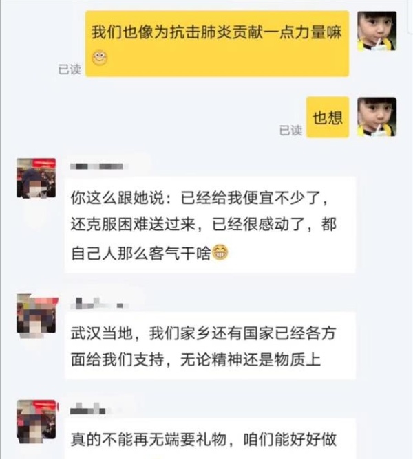 昨晚,突然有人询价,对方说地址在雷神山。“因为武汉没这个地名,我想肯定是雷神山医院,所以问他是不是援鄂医生,没想到真是。”吕先生说。他立即告诉了杨女士,瞬间得到了回复:那就送给这位医生吧!